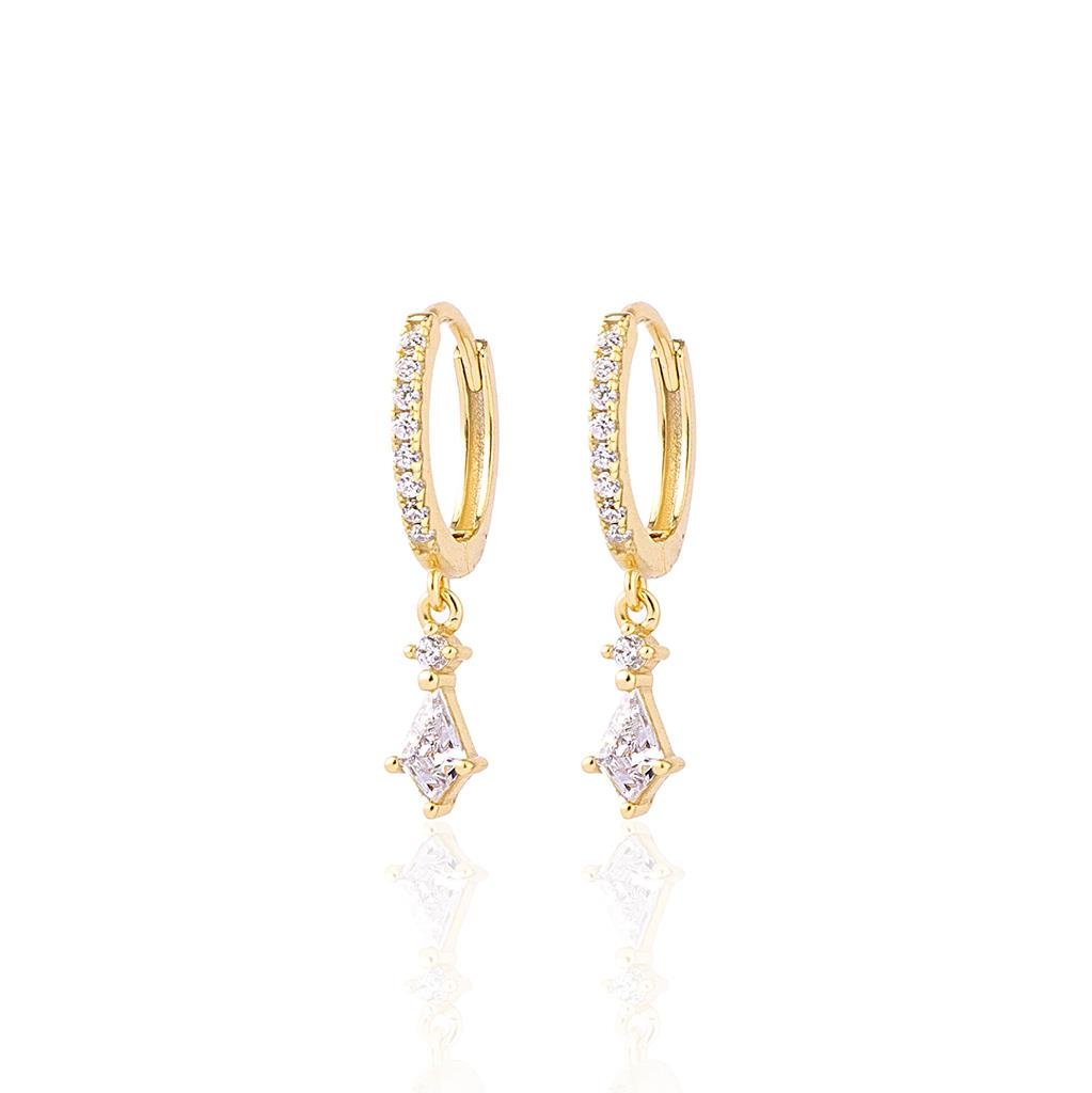 Baklava Taşlı Salkım Küpe İri Baklava Taşlı Halka Küpe Zincirli Mini Kutup Yıldızı Küpe Gold