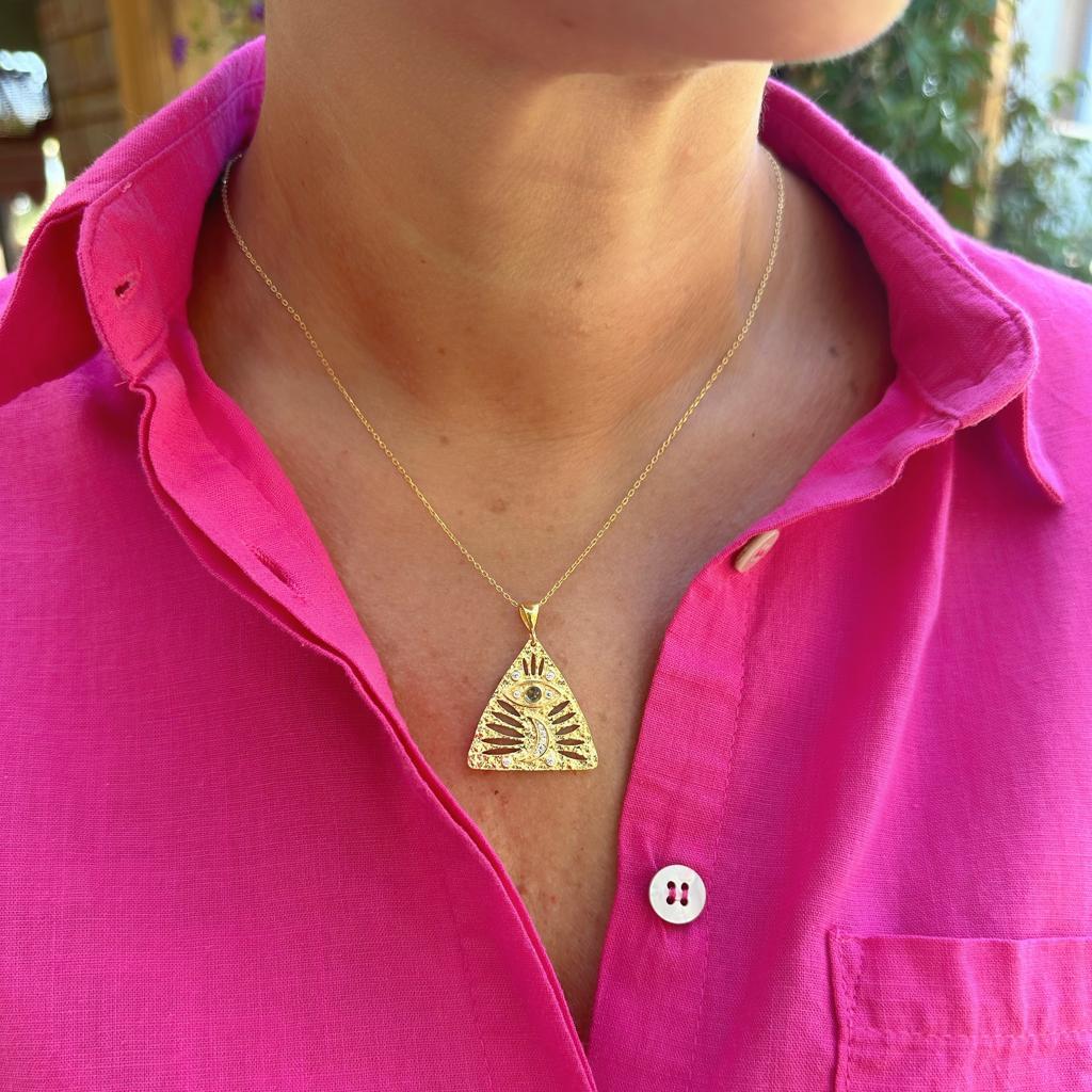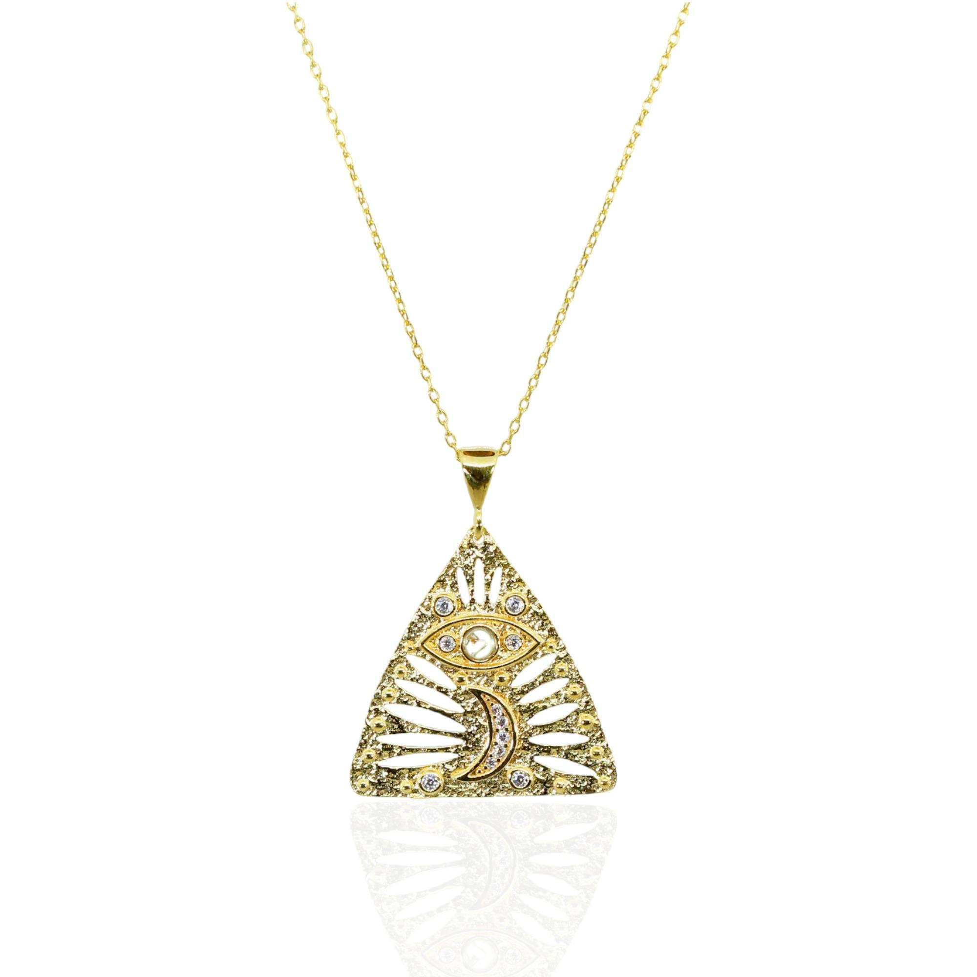 925 Ayar gümüş Zirkon taş işlemeli Altın rodaj kaplama 45+5cm zincir uzunluğu kolye ucu 2,5cmX2,5cm Ürünlerimizin uzun ömürlü olması için, parfüm, deterjan gibi kimyasal maddeler içeren ürünler ile temasından kaçınınız.