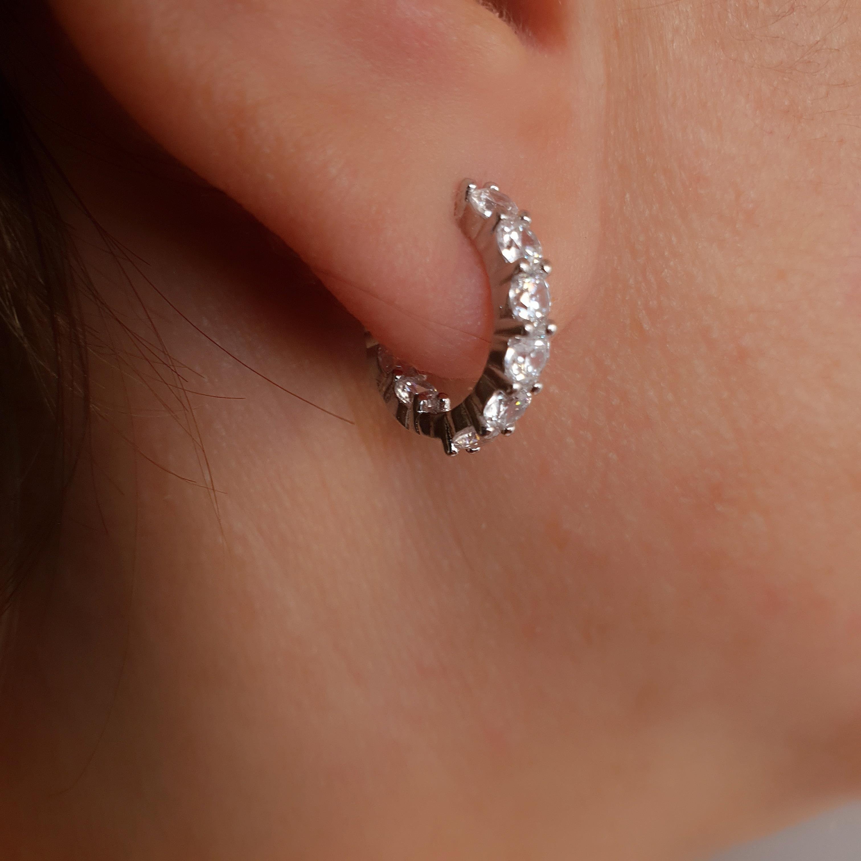 Küpemiz sıralı zirkon taştan üretilmiştir Özelliği altı sıralı taş dışarı bakarken, üç adet taşımızda küpemizin iç kısmında yer almaktadır. Küpemizin dıştan dışa çapı 1.5cm dir. Ürünlerimizin tamamı 925 ayar gümüşten üretilmektedir. Beyaz rodaj kaplama