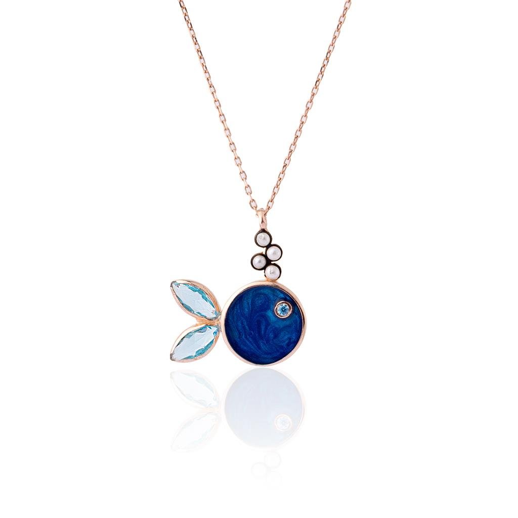 Mineli ve Taşlı Mavi Balık Kolye (MNTSKLY1083)